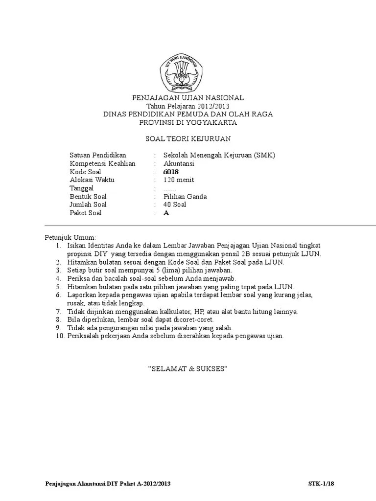 Soal ukk smk akuntansi tahun pelajaran 2018 2019 anugerah dino. Berikut ini kami bagikan soal prediksi un teori kejuruan perbankan 2021. Soal teori kejuruan (stk) merupakan bagian dari ukk (uji kompetensi kejuruan) smk yang berupa soal pilihan ganda dengan 5 opsi jawaban. Sekolah menengah kejuruan (smk) kompetensi keahlian . 3 petunjuk penyelesaian soal ujian praktik akuntansi mengelola buku jurnal i.